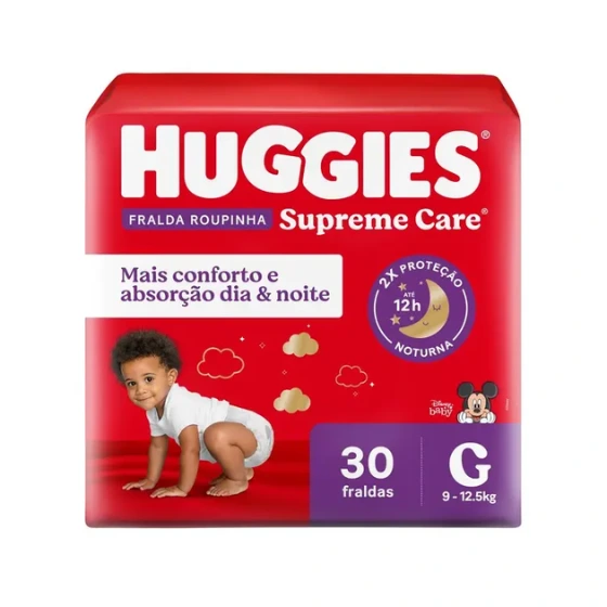 A Supreme Care é a companhia perfeita para você que busca máxima proteção enquanto seu bebê se movimenta. Com uma suavidade mais macia do que nunca, especialmente na parte traseira, proporciona conforto e absorção ideais, mantendo seu bebê sempre sequinho. Graças à sua tecnologia exclusiva, a Supreme Care é a única com canais em formato de X, adaptando-se para oferecer mais liberdade de movimento, com uma anatomia que se adapta aos movimentos do seu bebê.