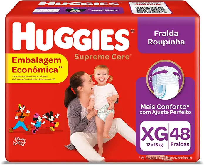 Com a Fralda Huggies Supreme Care Roupinha calça você poderá contar com a mais alta tecnologia e qualidade para manter seu bebê sempre seguro, ativo e confortável. Indicada para bebês de 12kg a 15kg, ela traz cintura elástica com ajuste perfeito para todos os tipos de corpinhos dos bebês.